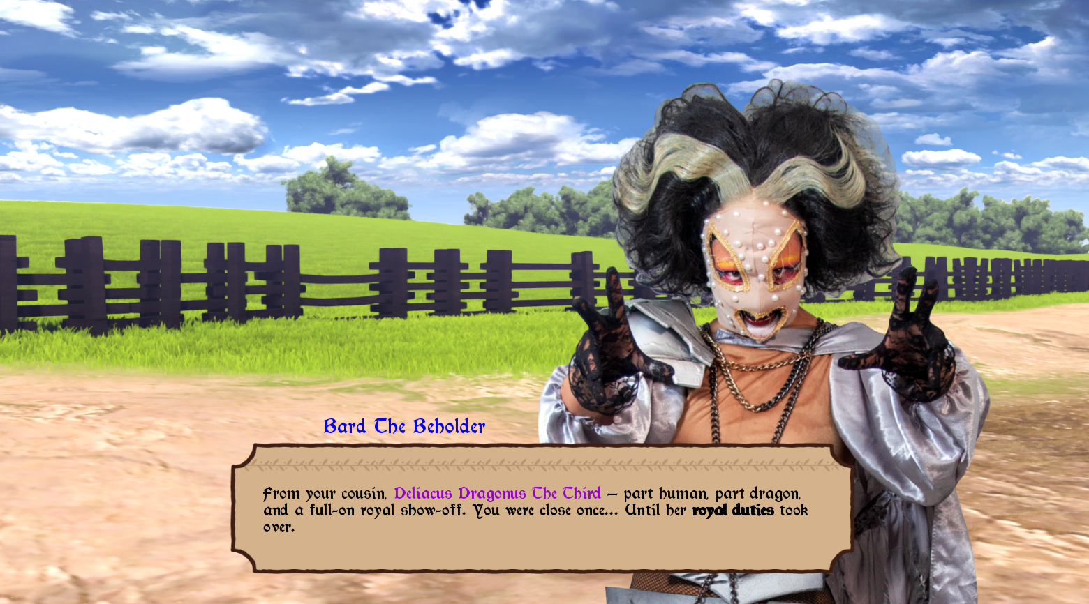 Following the expansion of the Twine story, this visual novel expands on Bard The Beholder's world, forming characters inspired by Paris Bordone’s St George and The Dragon.